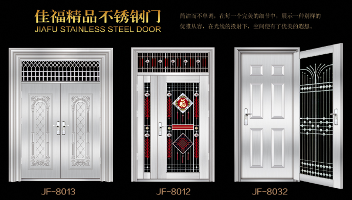 本公司成立于2004年,已有19年的生產(chǎn)進(jìn)戶門的經(jīng)驗(yàn)積累。公司現(xiàn)擁有鋼質(zhì)非標(biāo)門生產(chǎn)線、標(biāo)門生產(chǎn)線及不銹鋼門三條生產(chǎn)線,我公司專業(yè)設(shè)計(jì)、制造、銷售鋼質(zhì)系列進(jìn)戶門、防盜門、不銹鋼門等產(chǎn)品,擁有“宇佳?盈福”和“佳有福”、“家福.興隆”三個(gè)自主品牌和產(chǎn)品系列。公司引進(jìn)了先進(jìn)的生產(chǎn)技術(shù),配置了成龍配套的現(xiàn)代化生產(chǎn)流水線。產(chǎn)品工藝成熟,質(zhì)量上乘。同時(shí),公司廣納賢才,聚集了一批具有開(kāi)拓創(chuàng)新精神的各類高級(jí)管理和技術(shù)人才,建立了一套先進(jìn)的管理模式。